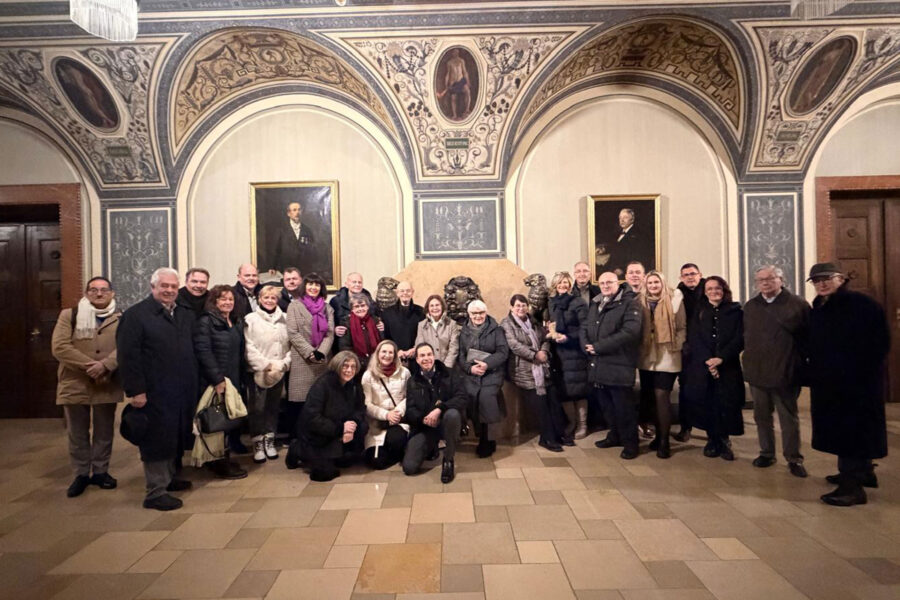 Bildunterschrift: Inmitten geschichtsträchtiger Mauern: Die Mitglieder des Lions Clubs im Jugendstil-Ambiente des Chemnitzer Rathauses.