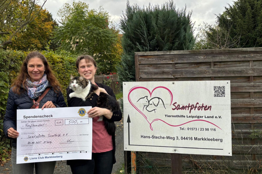 Markkleeberg, 24. Oktober 2025 – Der Lions-Club Markkleeberg hat dem Verein Samtpfoten Tiernot-hilfe Leipziger Land e.V. eine Spende in Höhe von 500 Euro überreicht. Die Übergabe fand im Rahmen eines kleinen Treffens auf dem Vereinsgelände statt und unterstreicht das soziale Engagement des Clubs für regionale Projekte.